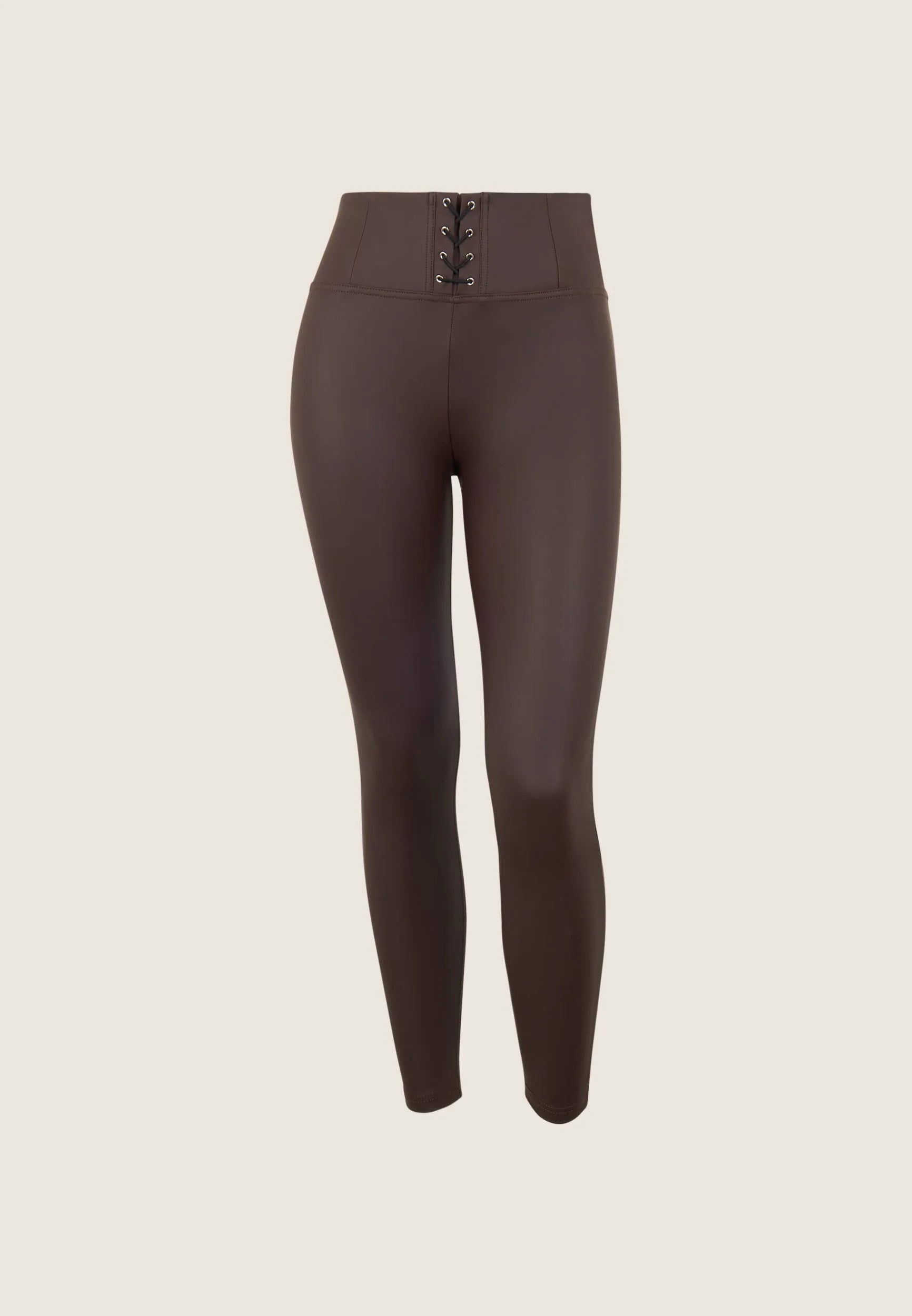 WRUP Faux Leather Criss Cross Detail - High Waisted - 7/8 Length - Chocolate