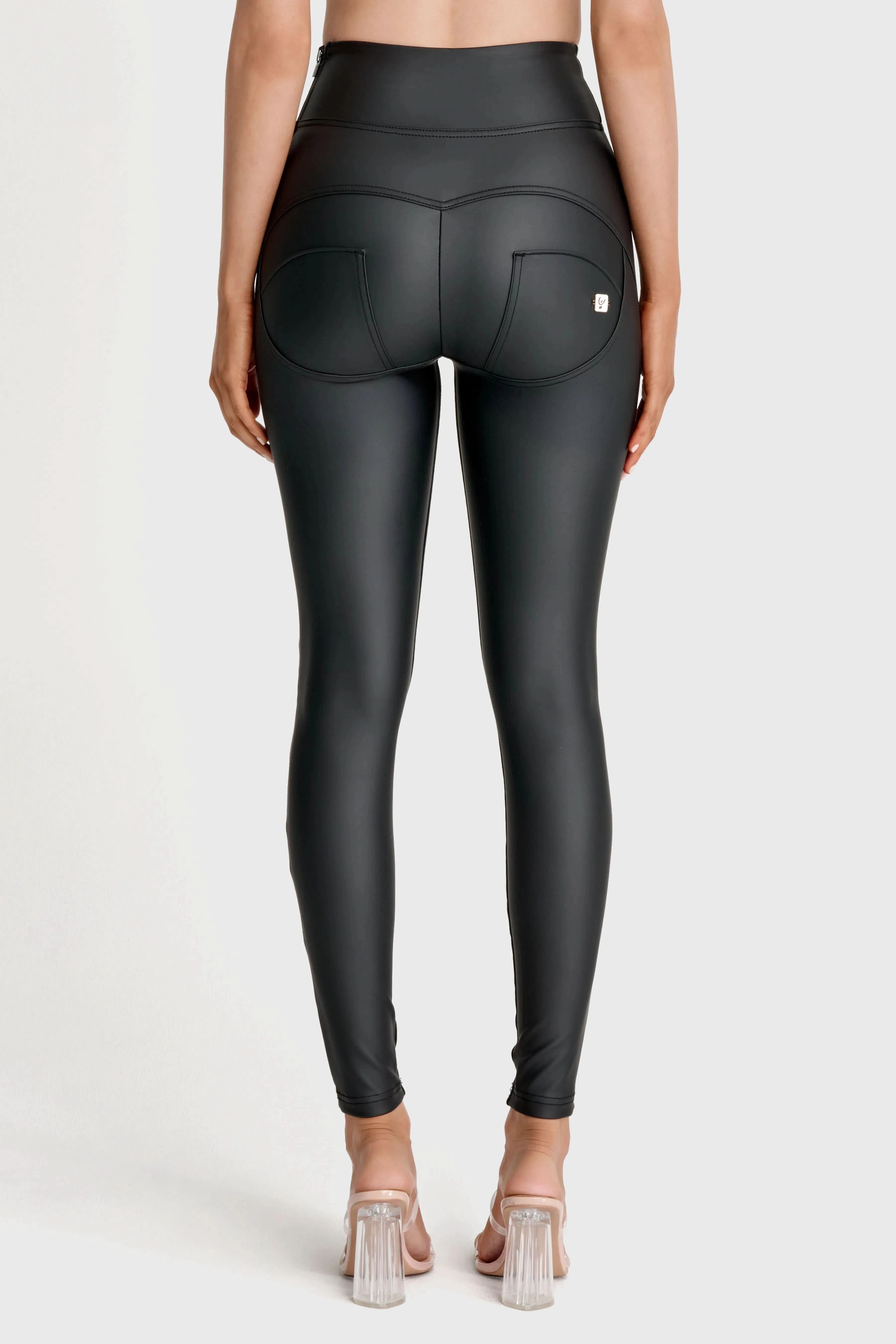 WRUP Faux Leather with Button Detail - Super High Waisted - Full Length - Black