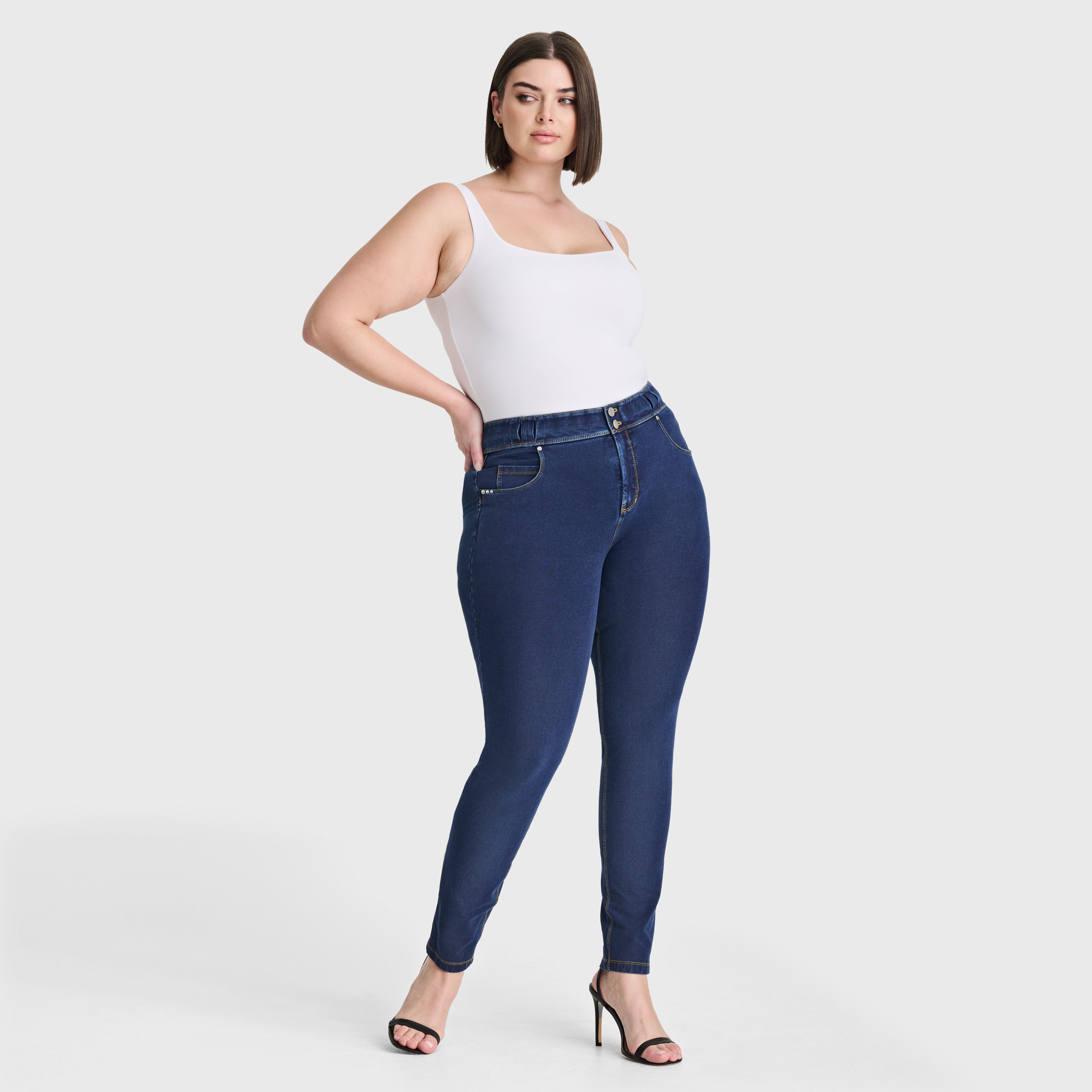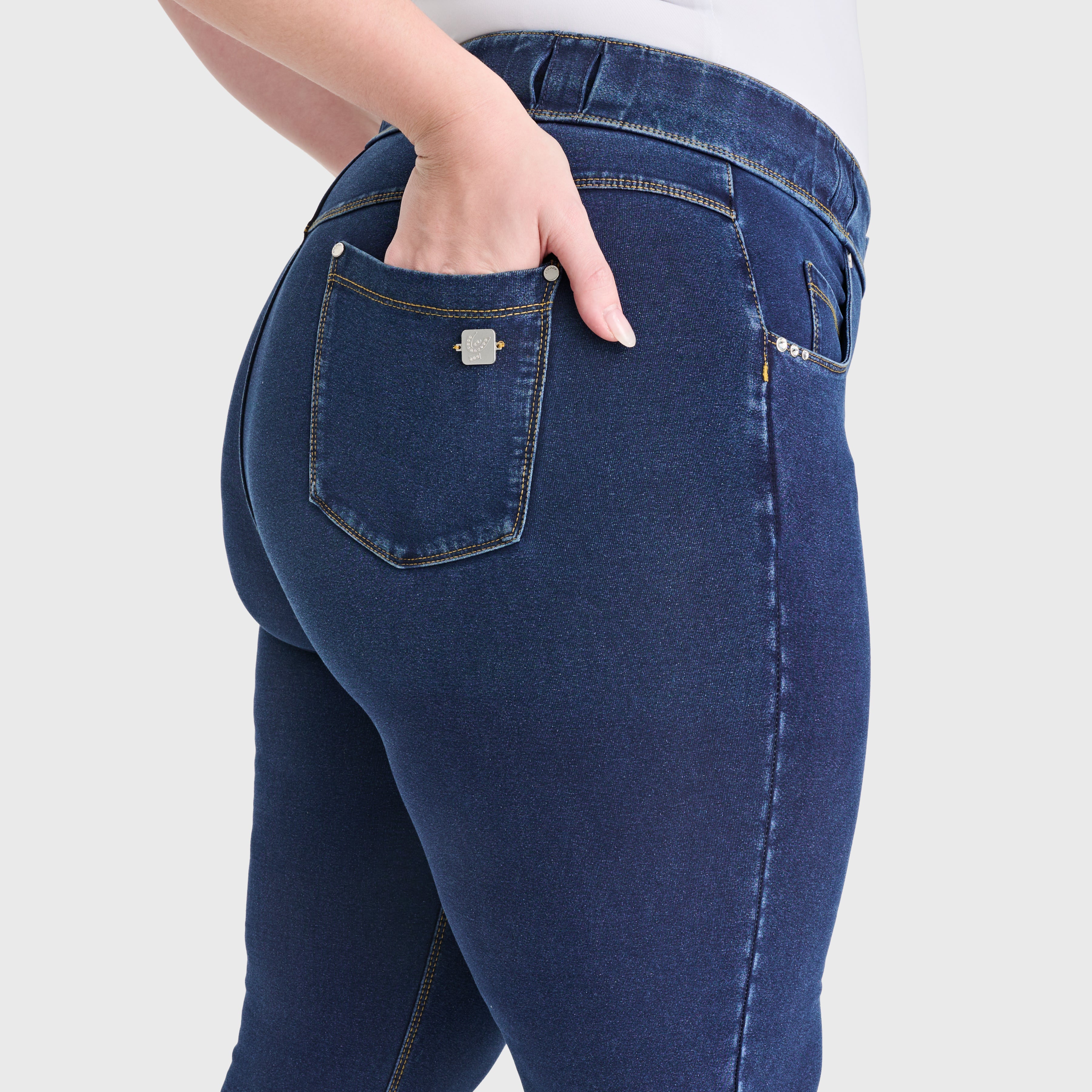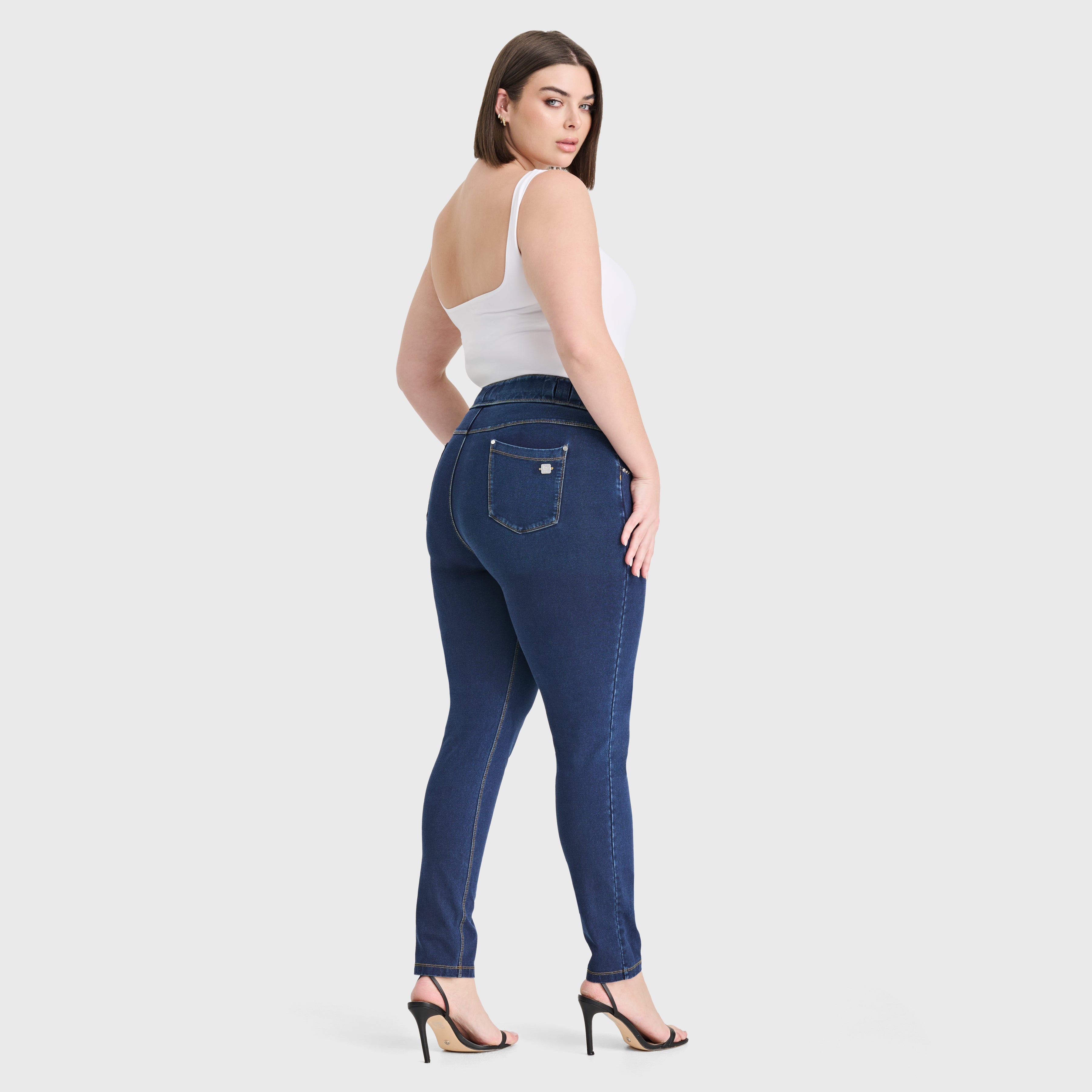 N.O.W® Denim - High Waisted - Full Length - Dark Blue + Yellow Stitching