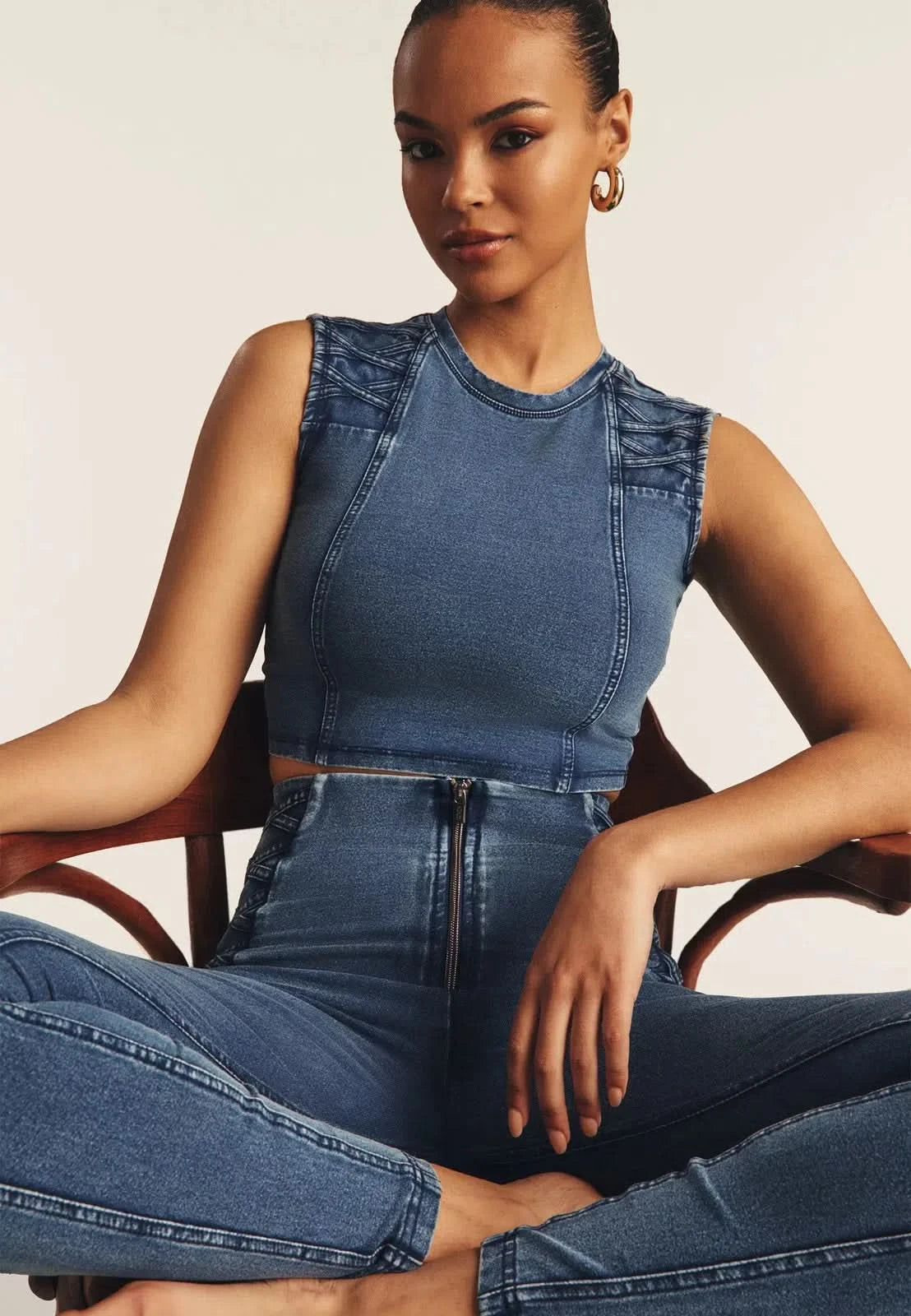 Cropped Tank Criss Cross Detail - Indigo Denim