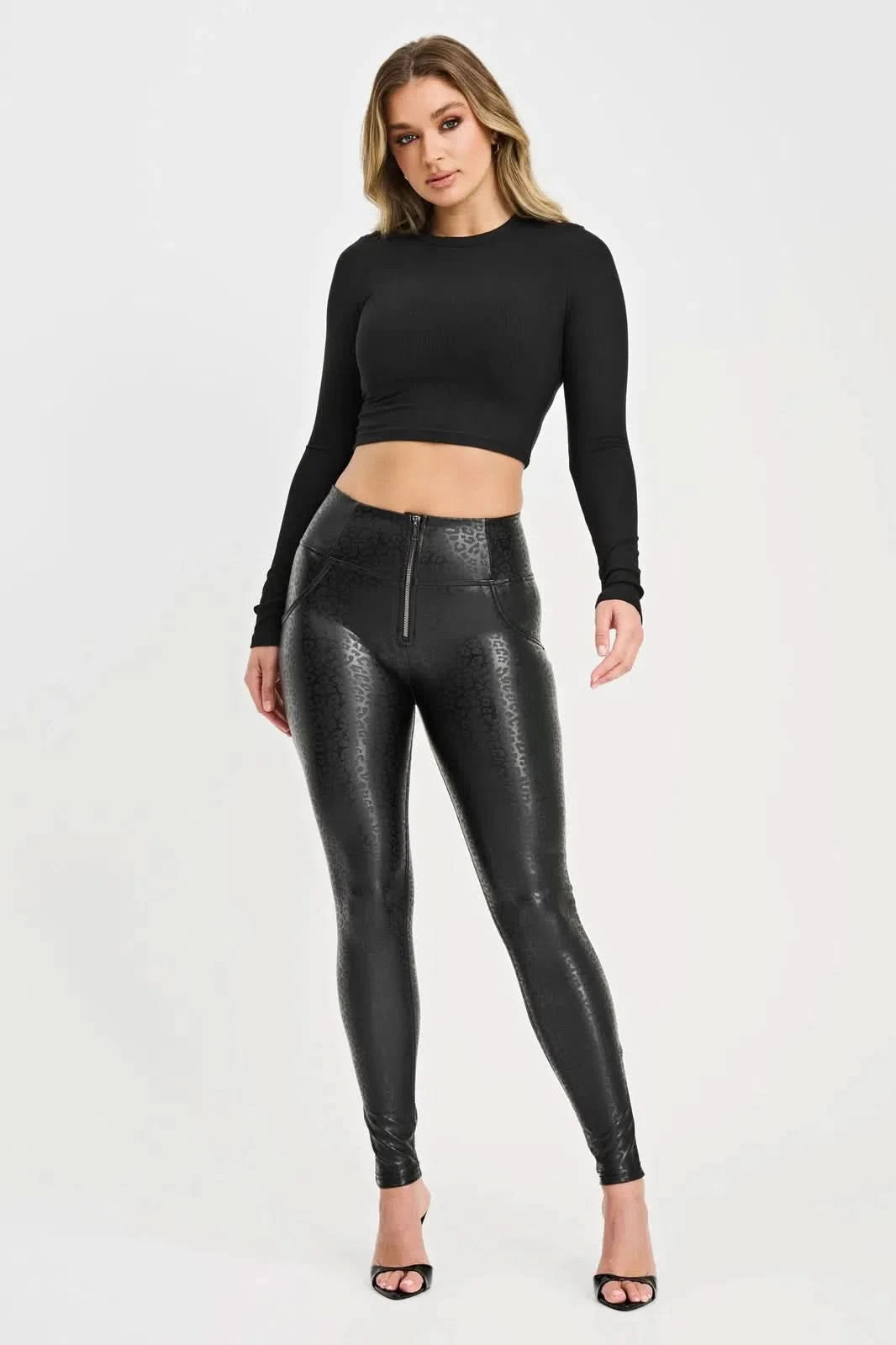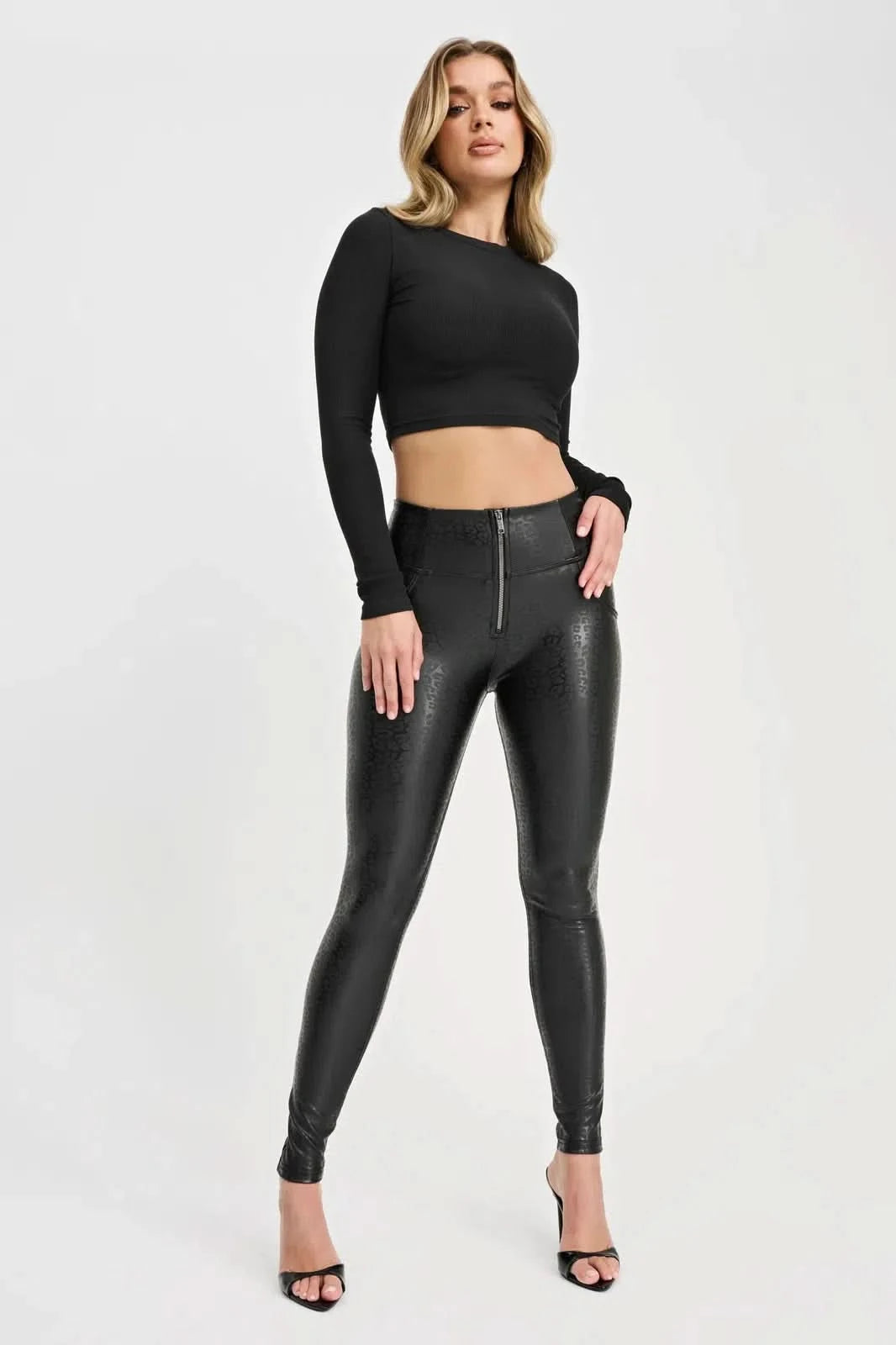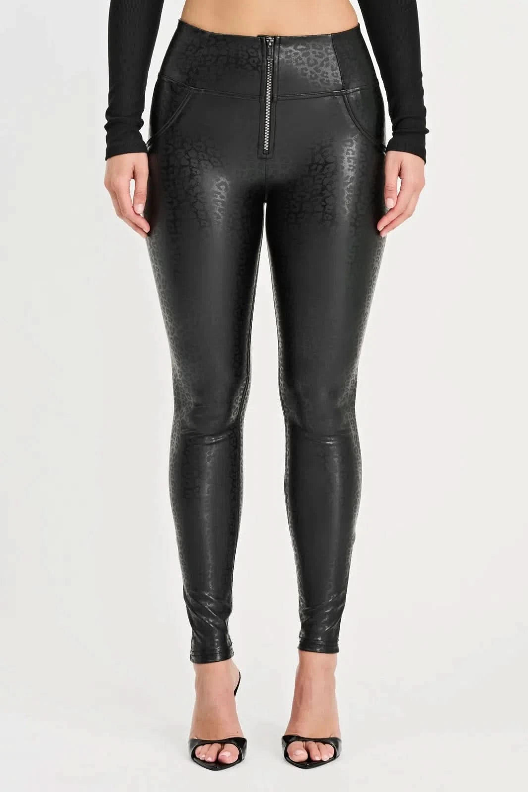 WRUP Panther Faux Leather - High Waisted - Full Length - Black