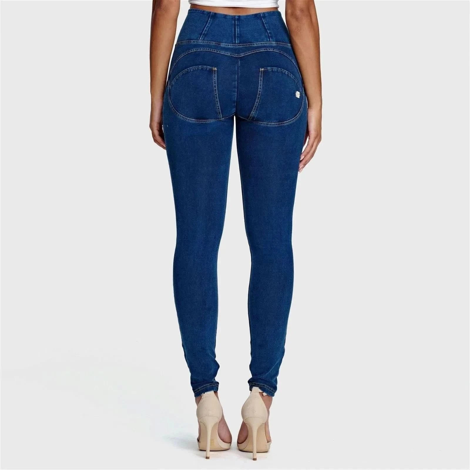 WRUP Denim - High Waisted - Full Length - Dark Blue + Yellow Stitching