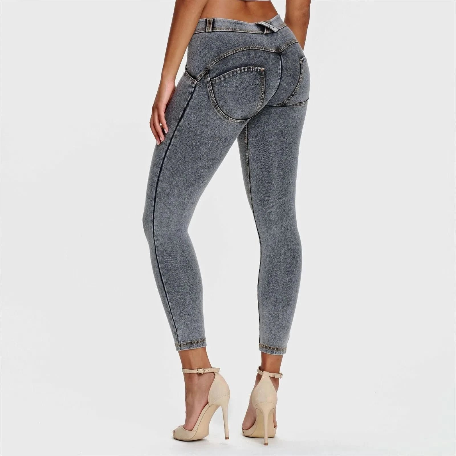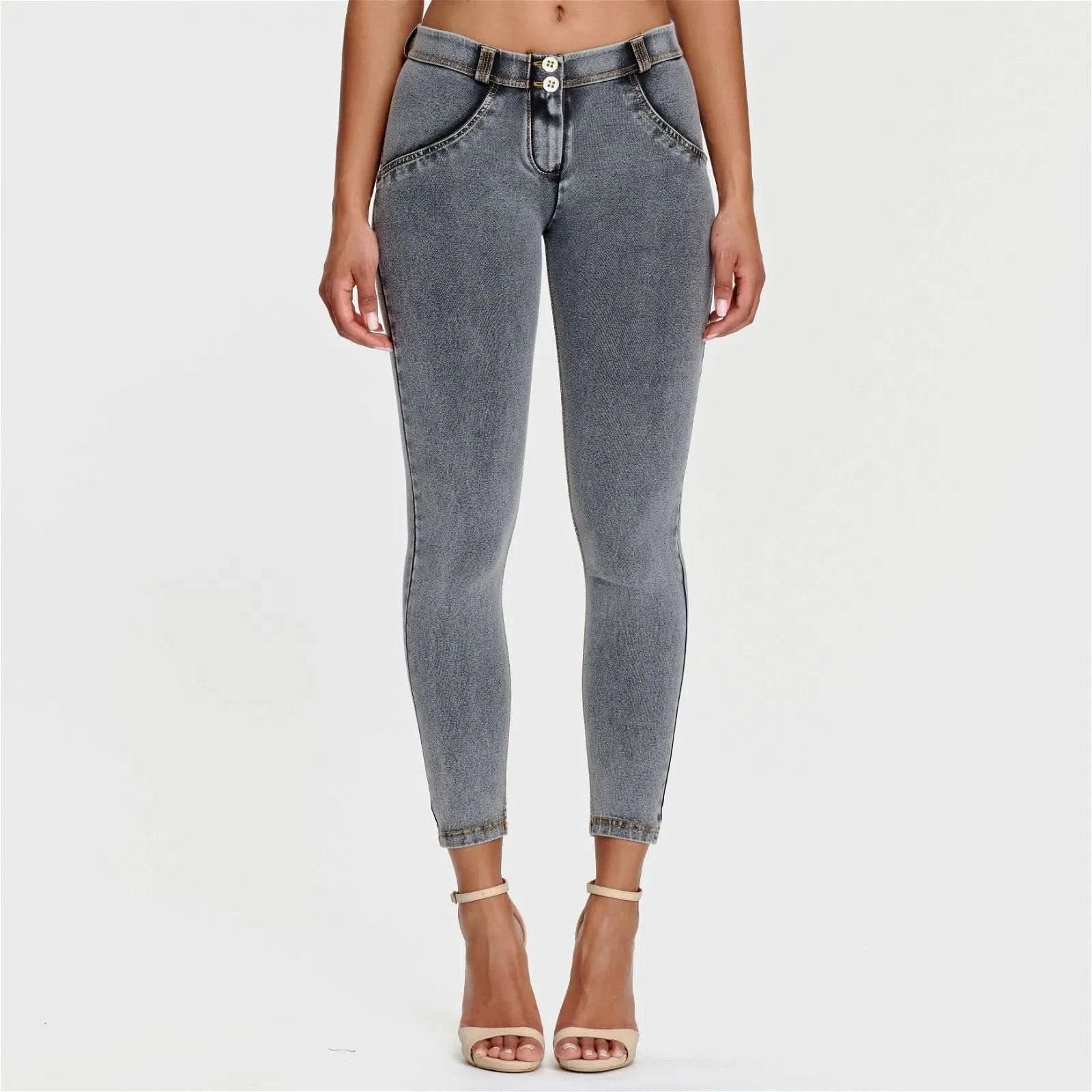 WRUP Denim - Mid Rise - 7/8 Length - Grey + Yellow Stitching