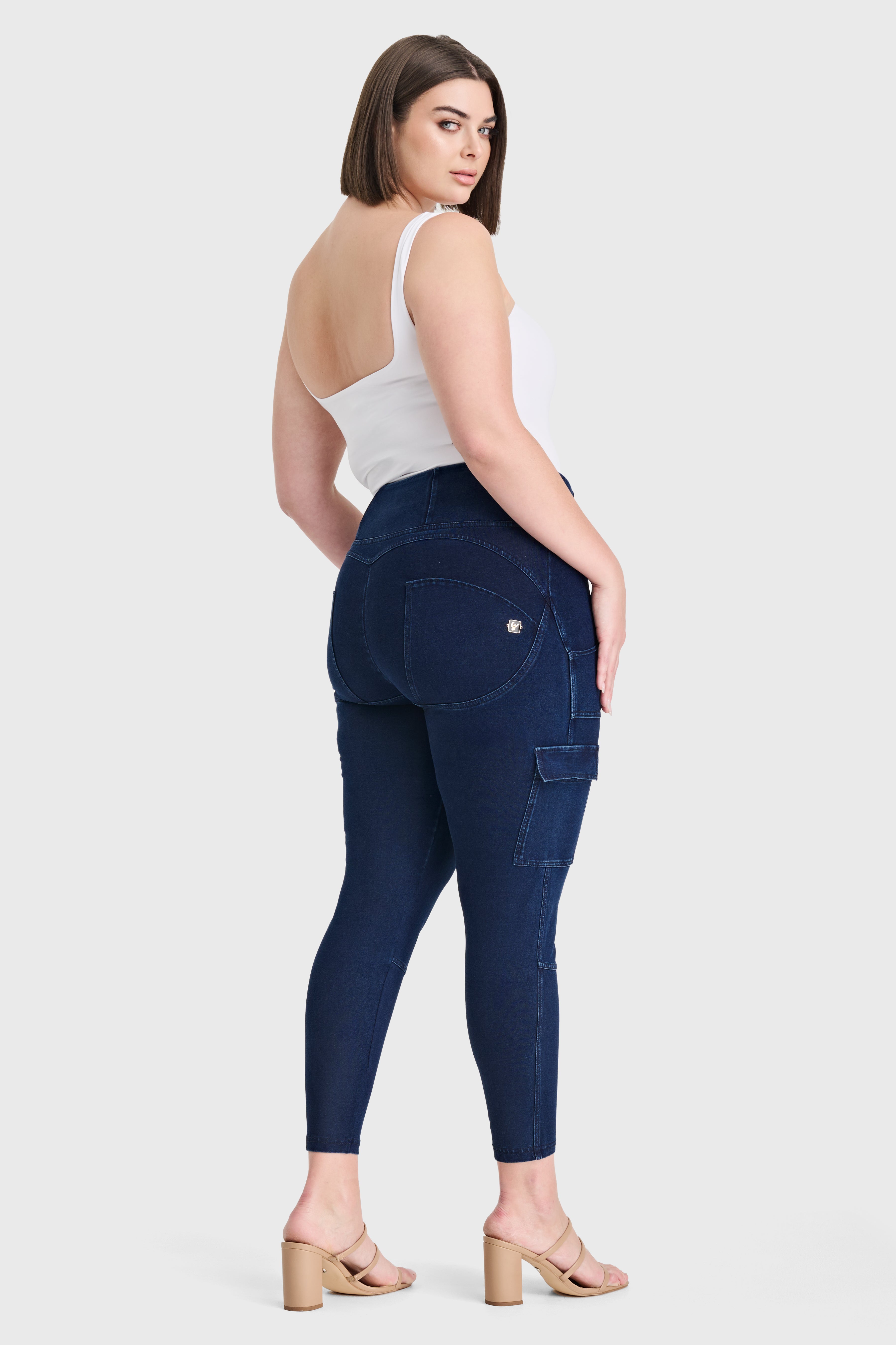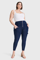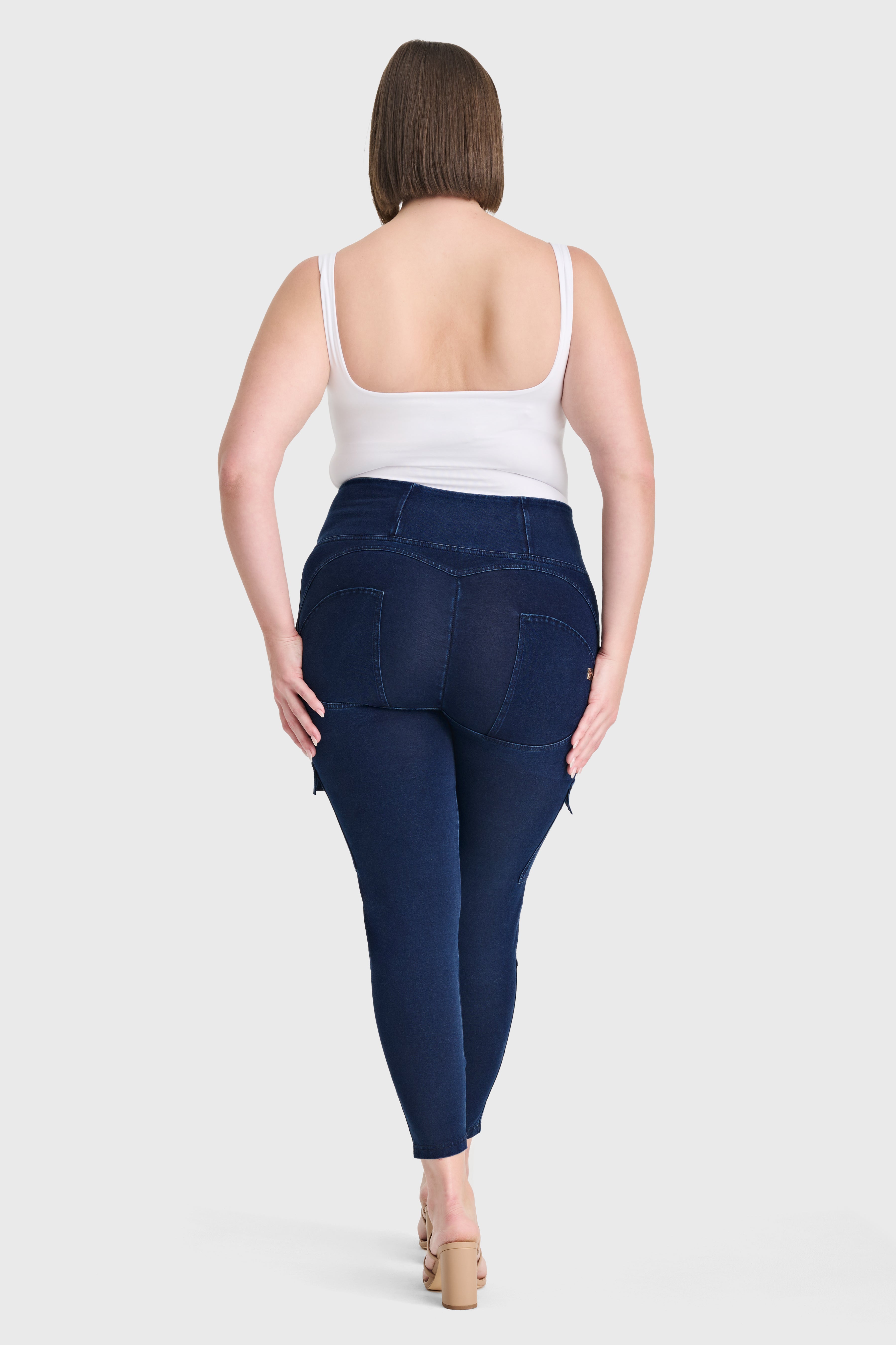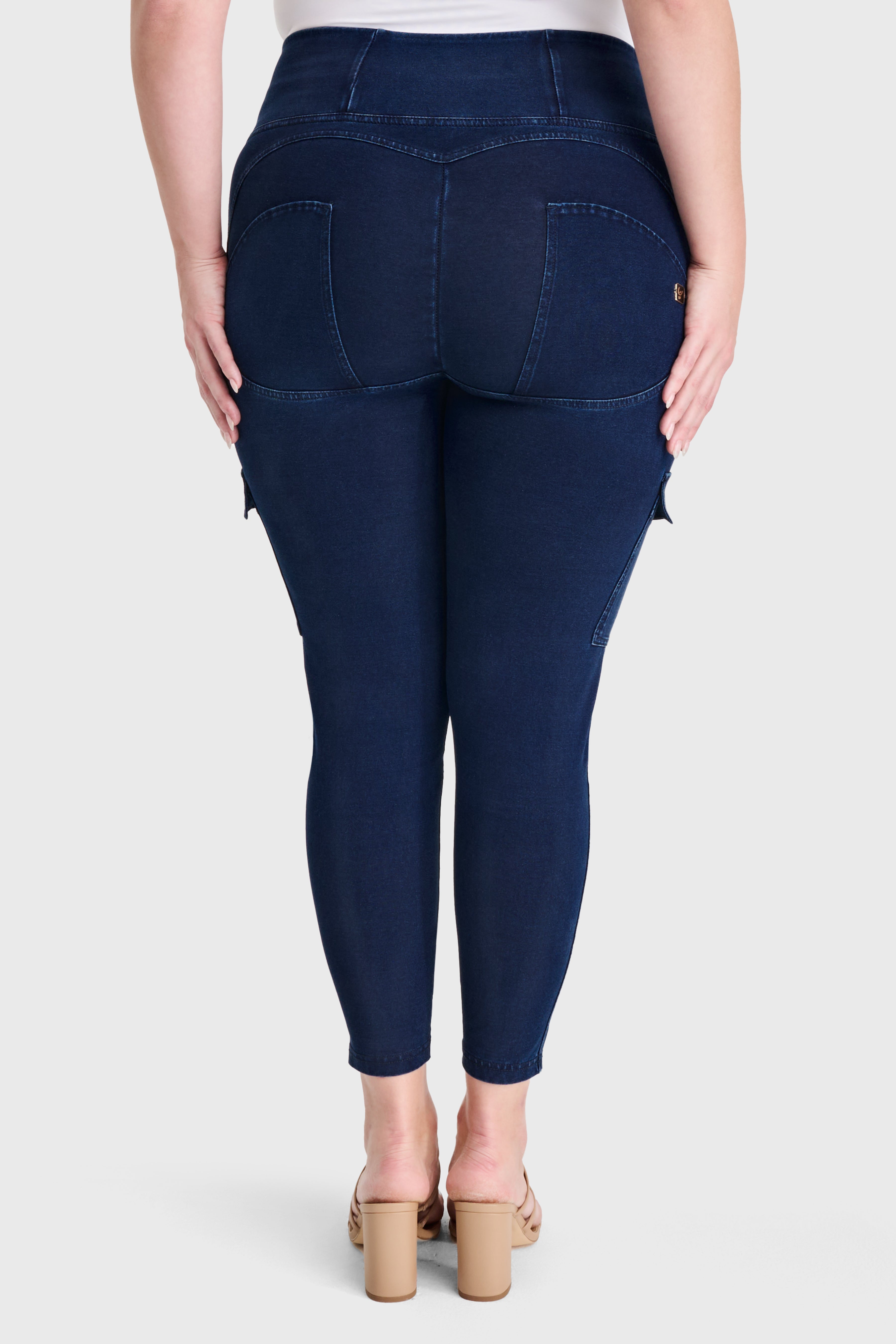 WRUP Cargo Denim - High Waisted - 7/8 Length - Dark Blue + Blue Stitching