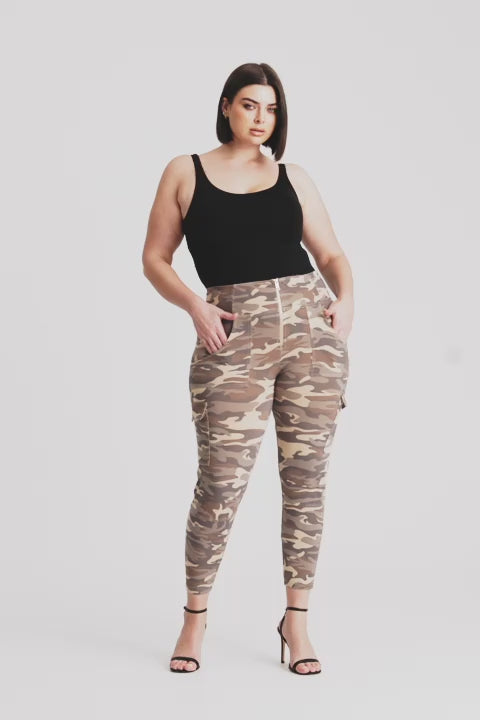 WRUP Cargo Fashion - High Waisted - 7/8 Length - Sand Camo