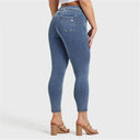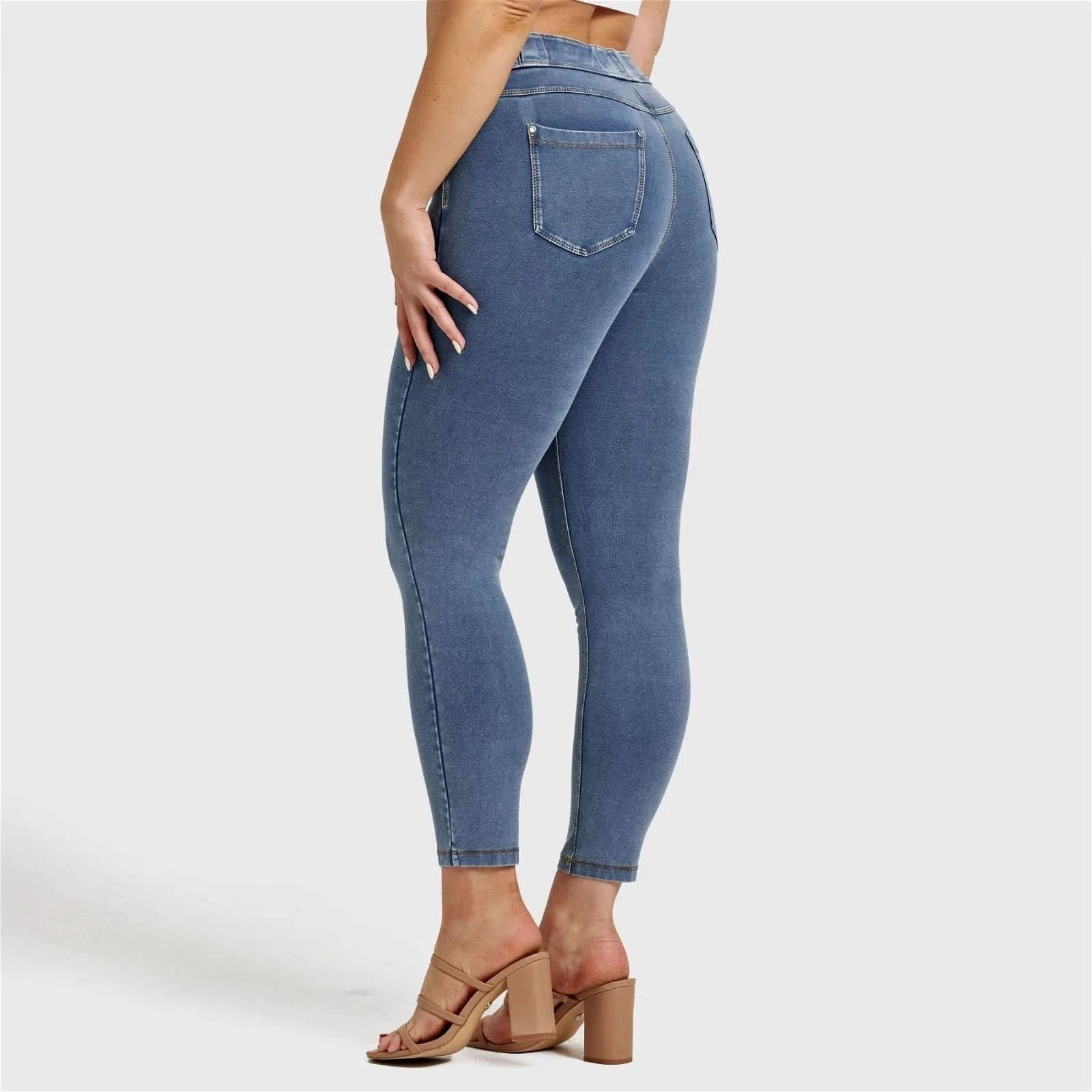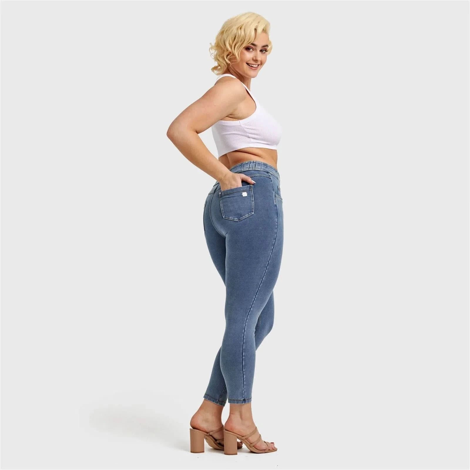 N.O.W® Denim - High Waisted - 7/8 Length - Light Blue + Yellow Stitching