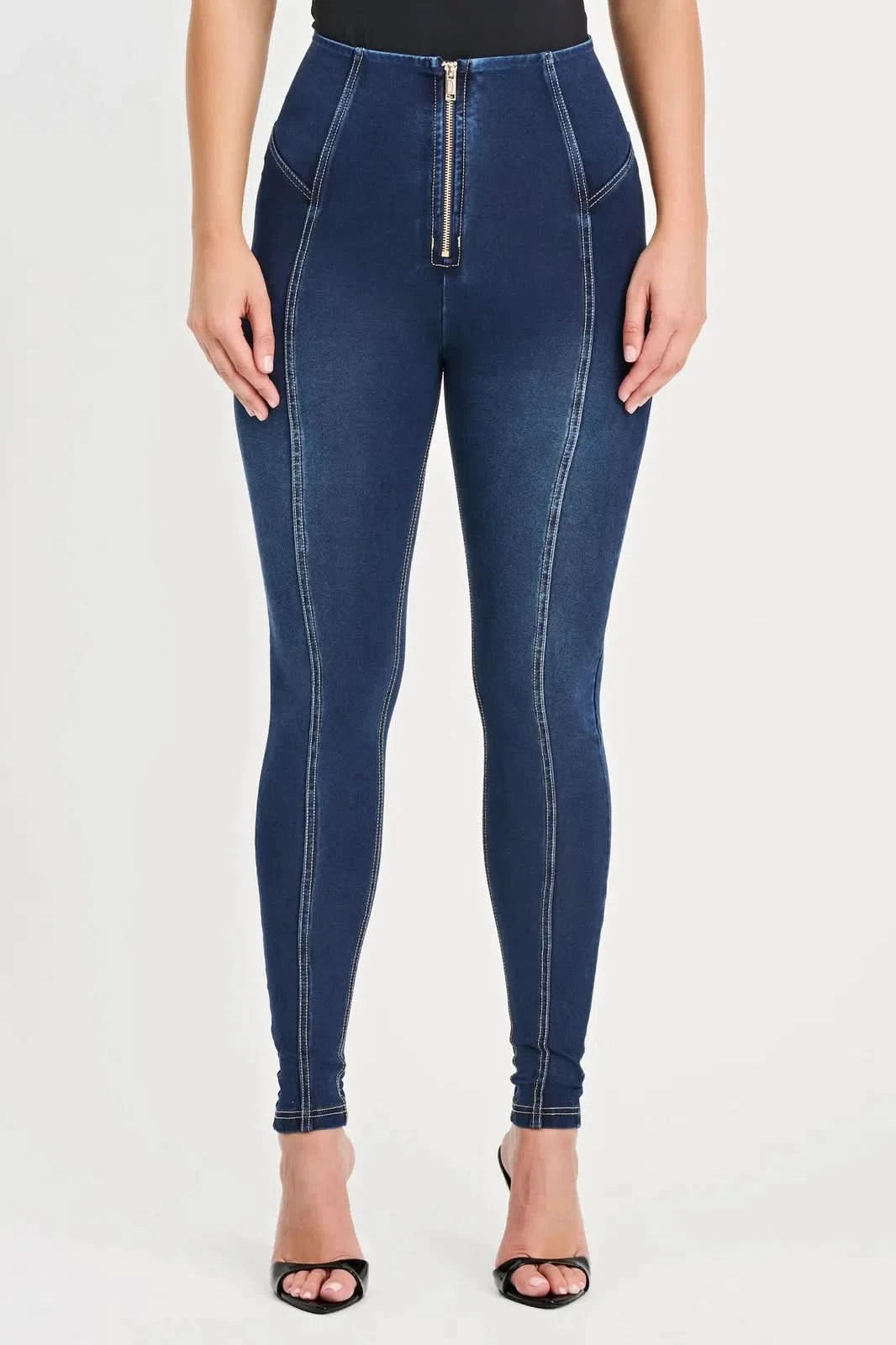 Elevate your style with our new denim range, featuring a striking center seam and contoured waist detailing that accentuates your silhouette. Crafted with Freddy's signature WRUP denim patent technology, they offer a body-hugging fit with the perfect amount of stretch. The full length and gold feature zip add a touch of sophistication, making these pants the ultimate choice for effortless elegance, whether you're dressing up or keeping it casual.