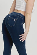 N.O.W® Denim - High Waisted - 7/8 Length - Dark Blue + Yellow Stitching