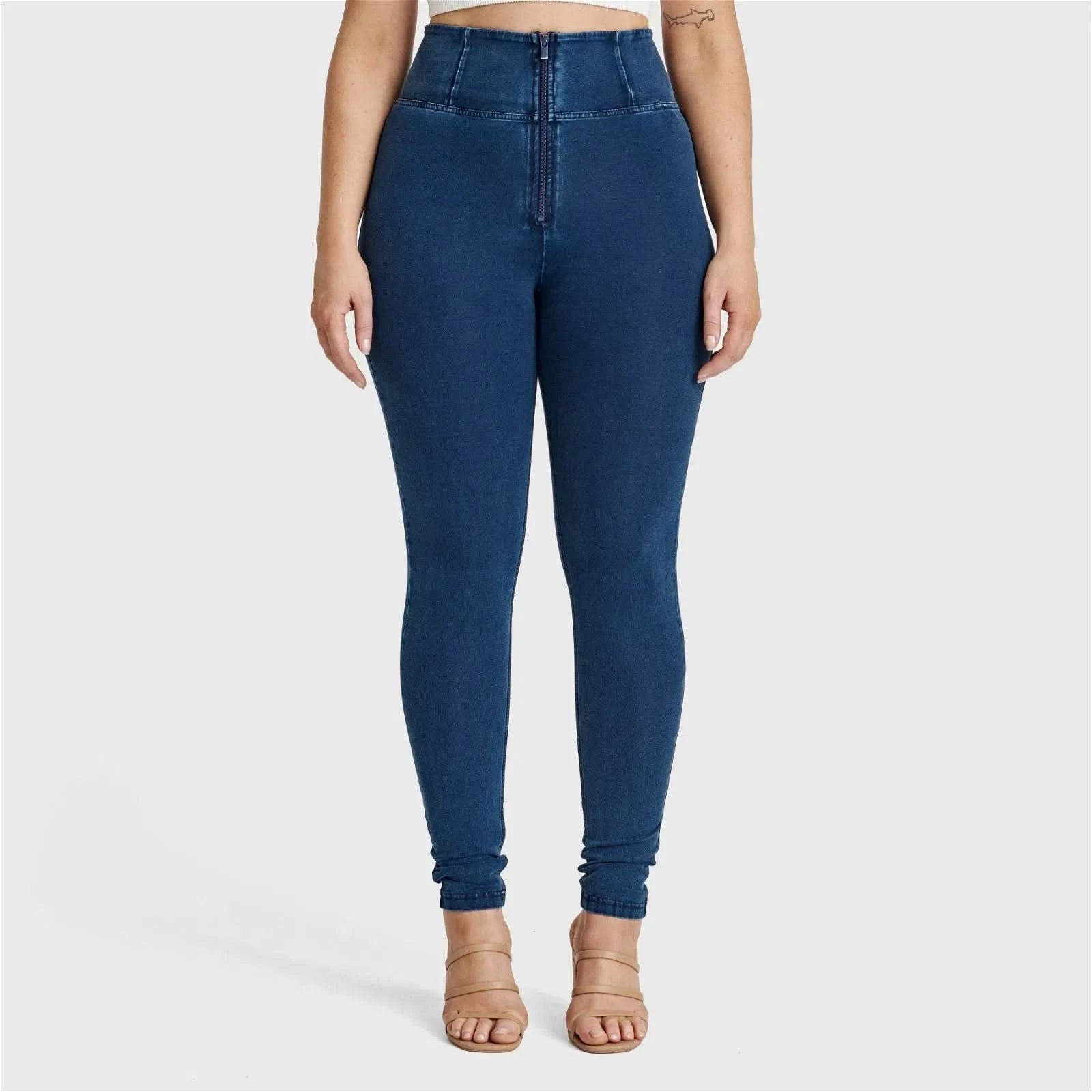 WRUP Curvy Denim - Zip High Waisted - Full Length - Dark Blue + Blue Stitching