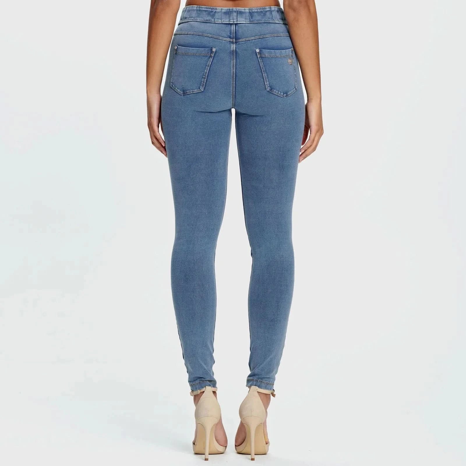 Incredibly comfortable form-fitting fabric with a waistband that contours your waistline securely, sitting higher than our traditional mid-rise styles. Looks like a traditional straight leg denim pant but in the worlds most comfortable Freddy fabric.