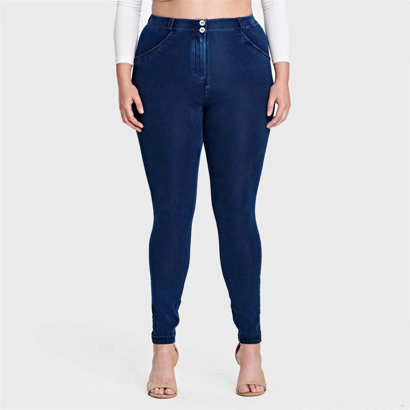 WRUP Curvy Denim - High Waisted - Full Length - Dark Blue + Blue Stitching