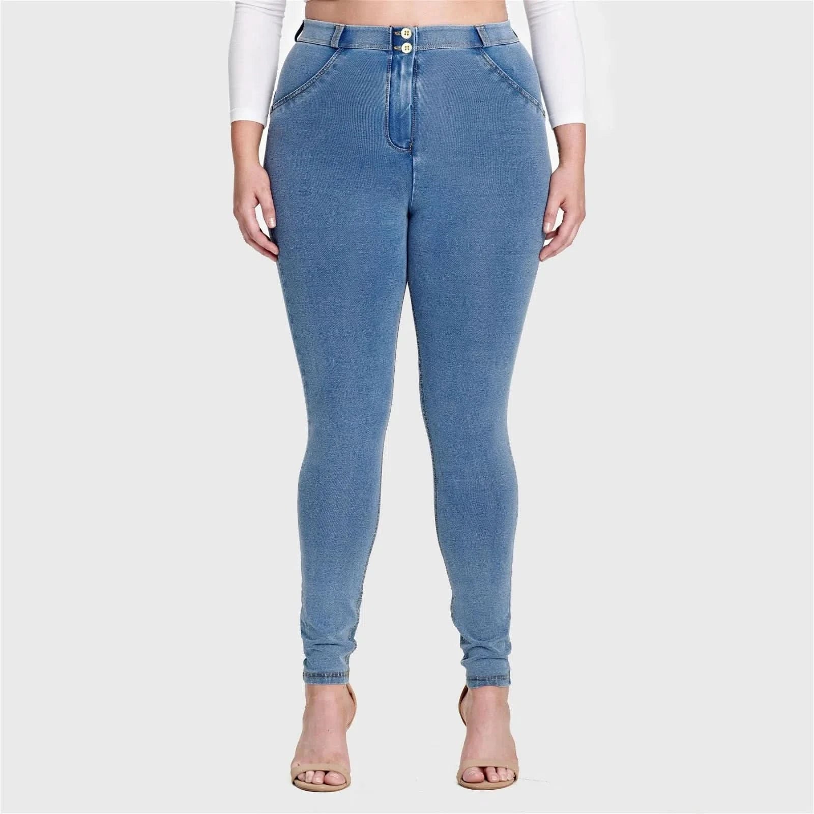 WRUP Curvy Denim - High Waisted - Full Length - Light Blue + Yellow Stitching