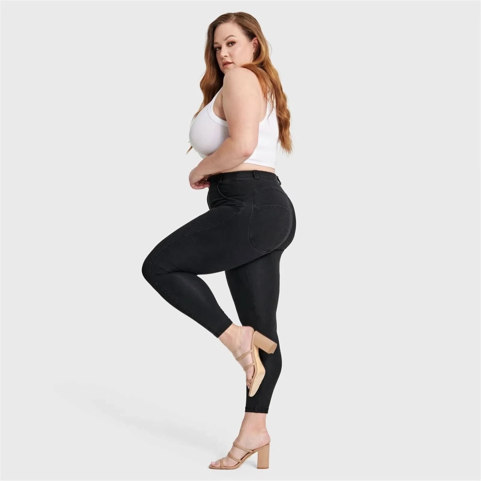 WRUP Curvy Denim - High Waisted - 7/8 Length - Black + Black Stitching