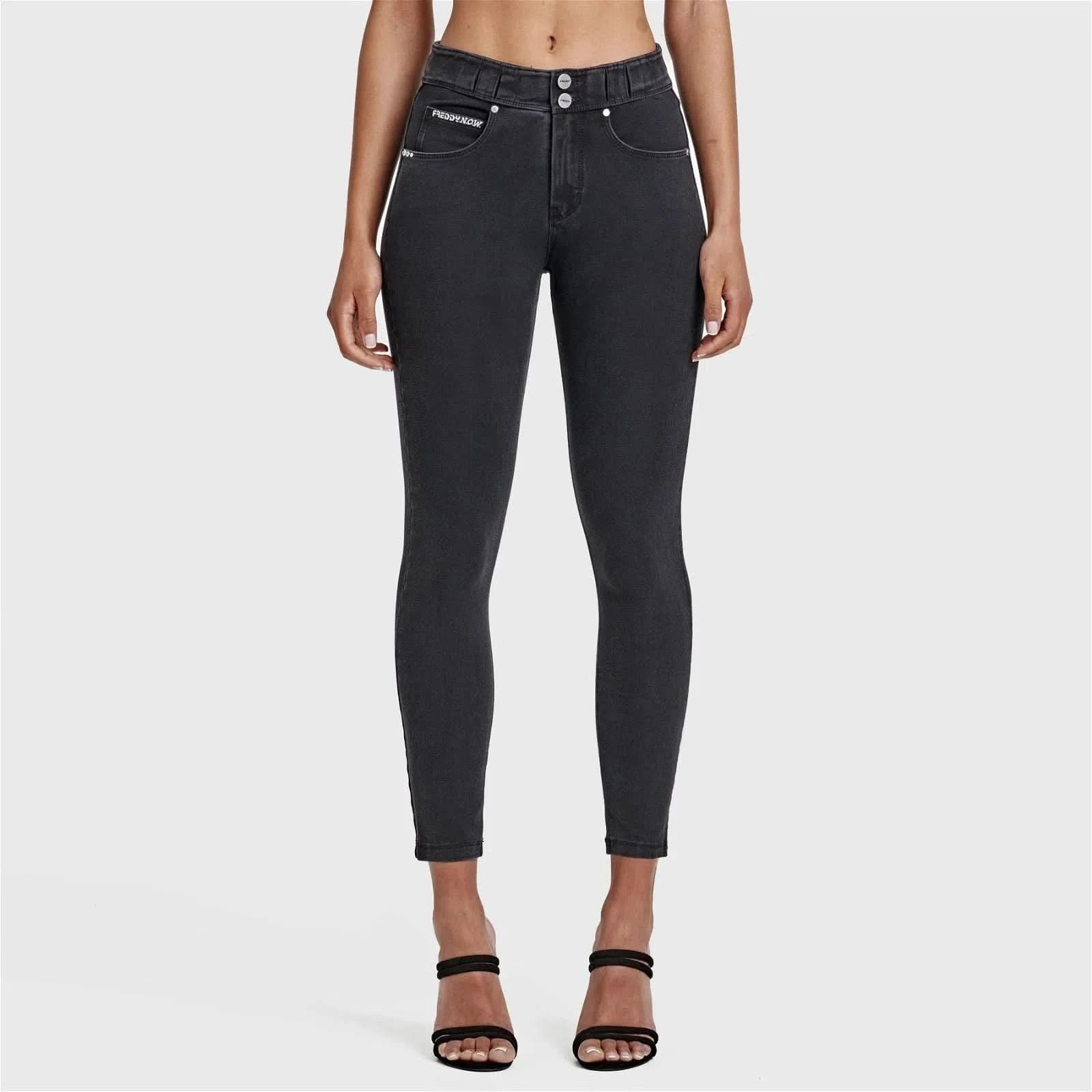 Incredibly comfortable form-fitting fabric with a waistband that contours your waistline securely, sitting higher than our traditional mid-rise styles. Looks like a traditional straight leg denim pant but in the worlds most comfortable Freddy fabric.