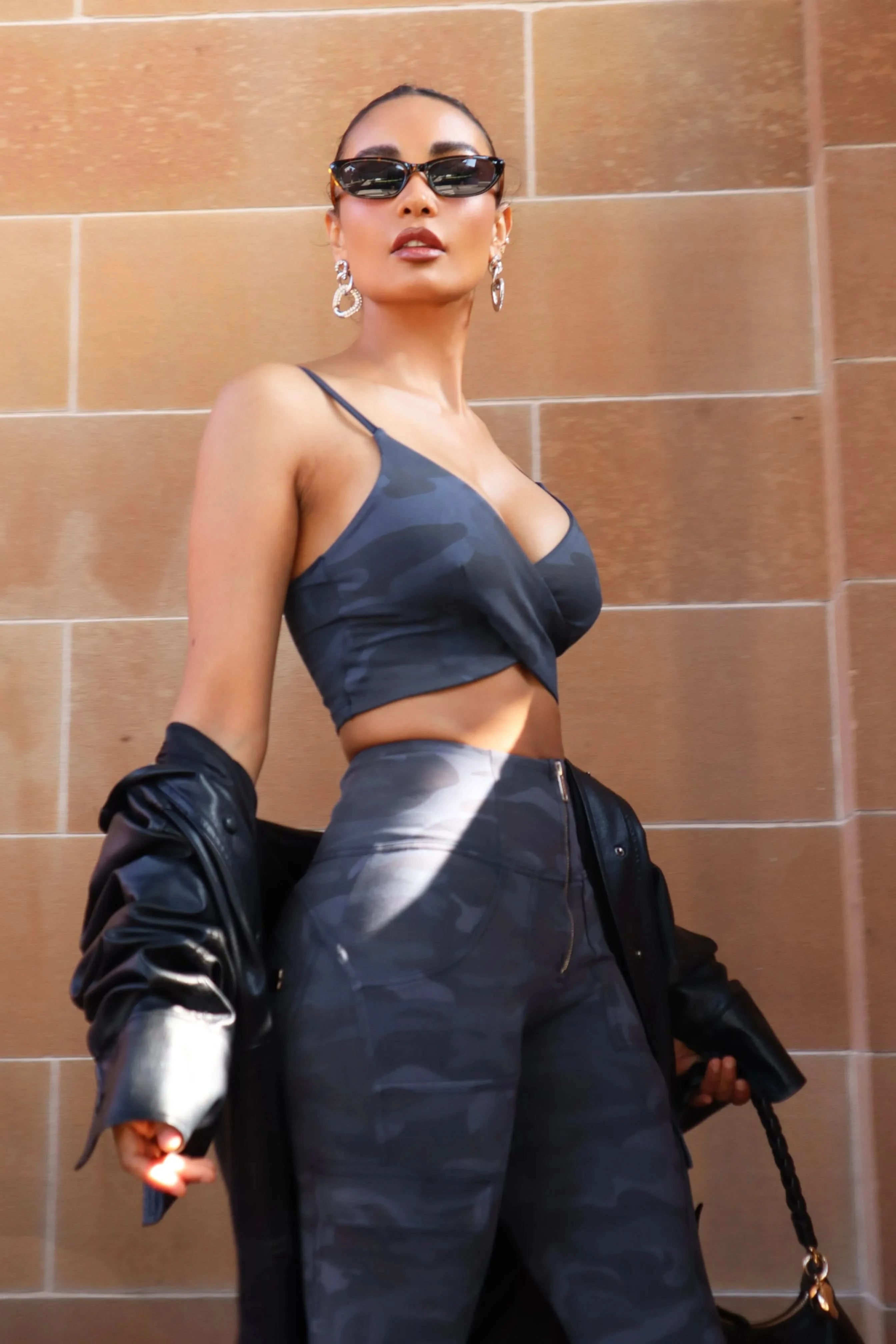 WRUP Cargo Fashion - High Waisted - 7/8 Length - Navy Blue Camo