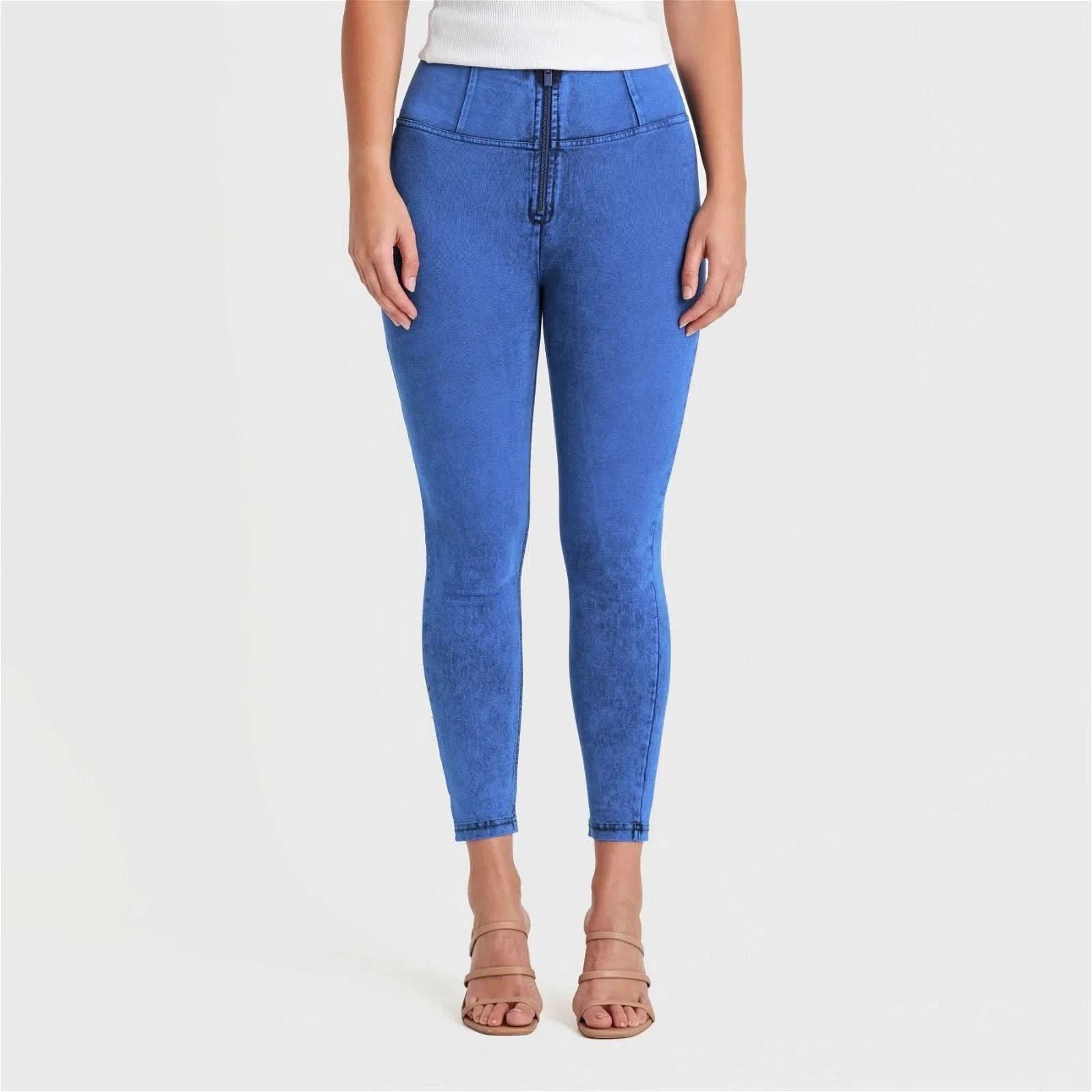 WRUP Denim - High Waisted - 7/8 Length - Cobalt Blue + Blue Stitching