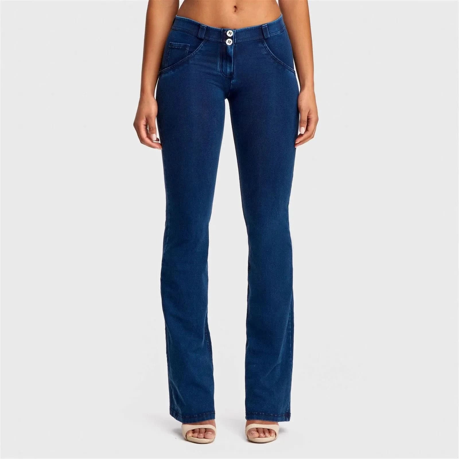 WRUP Denim - Mid Rise - Bell Bottom Flare - Dark Blue + Blue Stitching