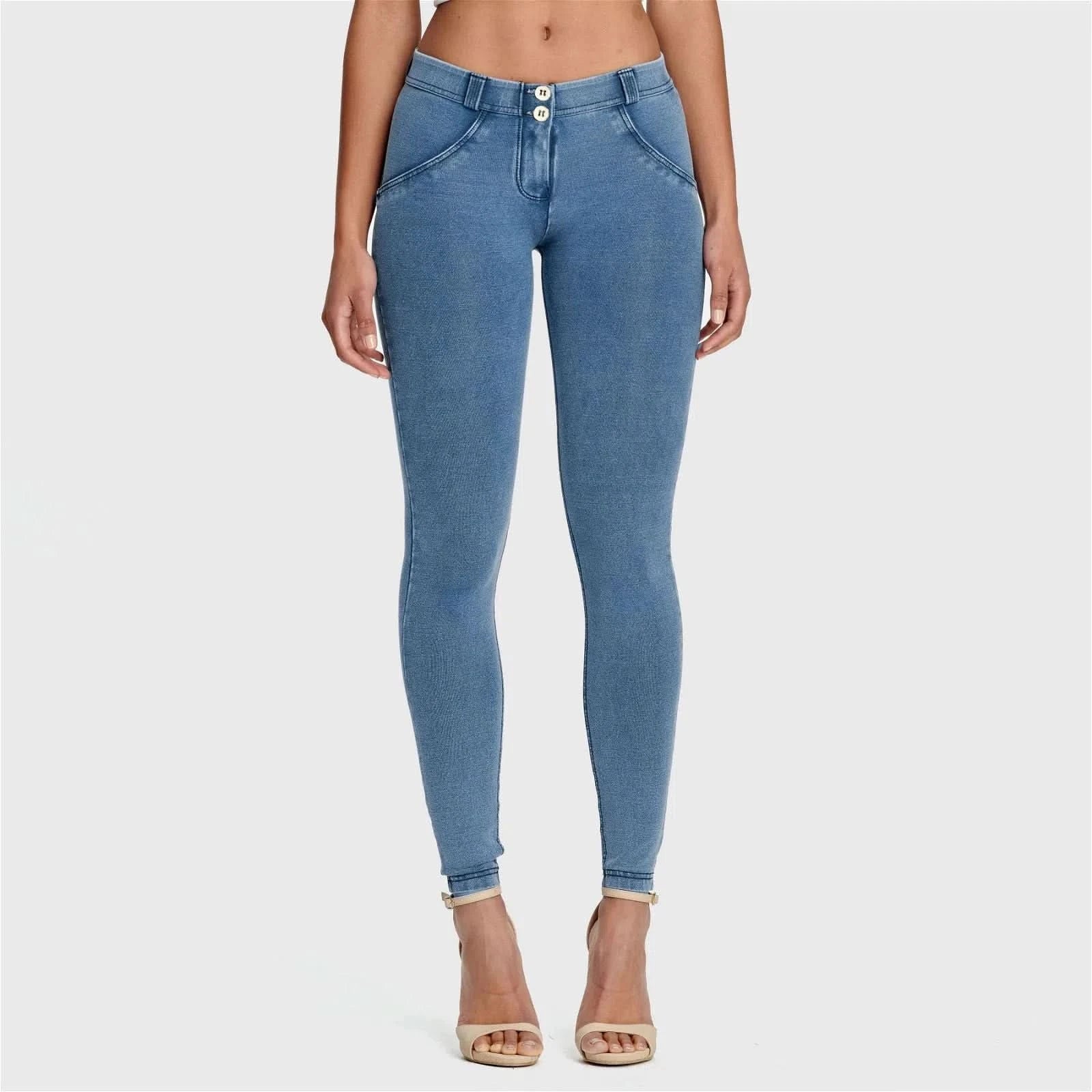 WRUP Denim - Mid Rise - Full Length - Light Blue + Blue Stitching