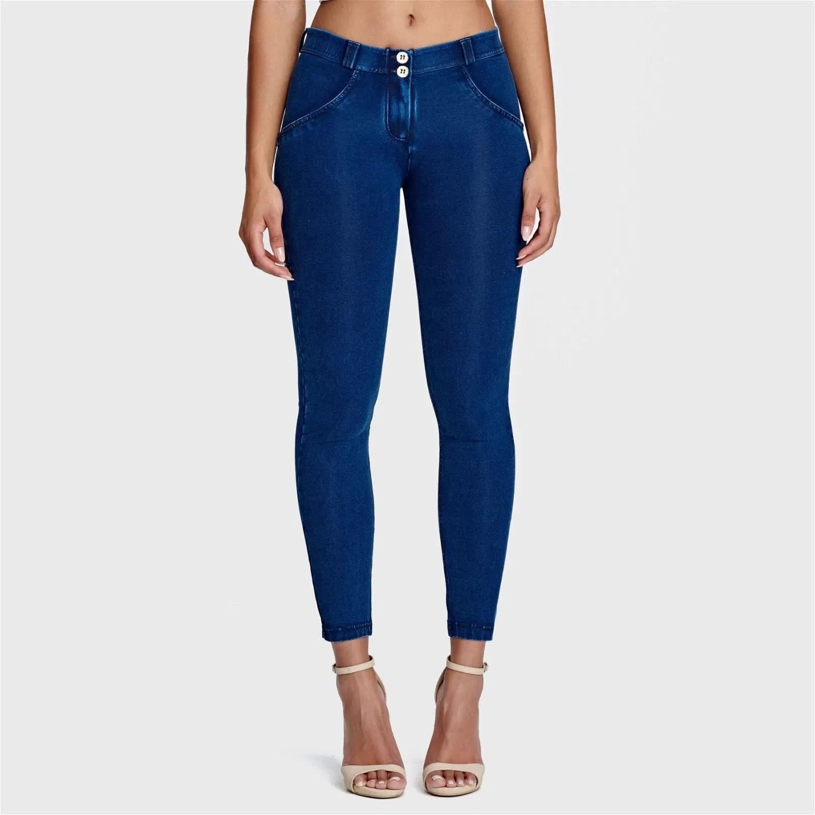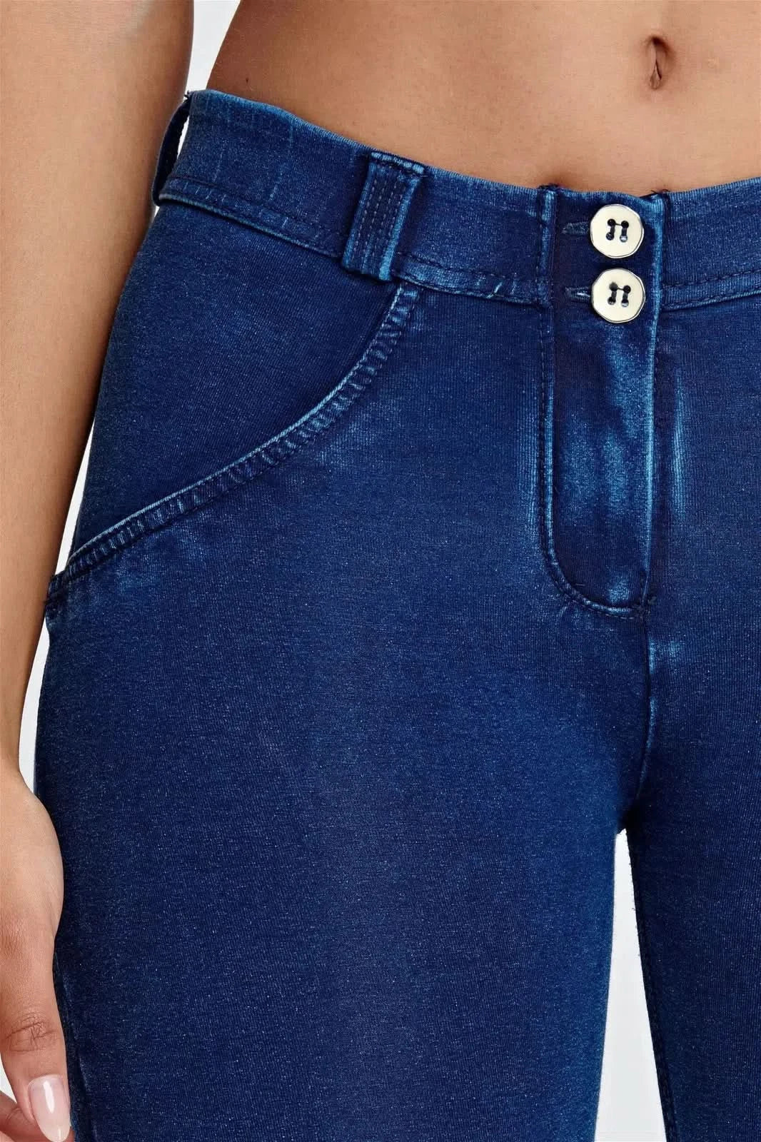 WRUP Denim - Mid Rise - 7/8 Length - Dark Blue + Blue Stitching