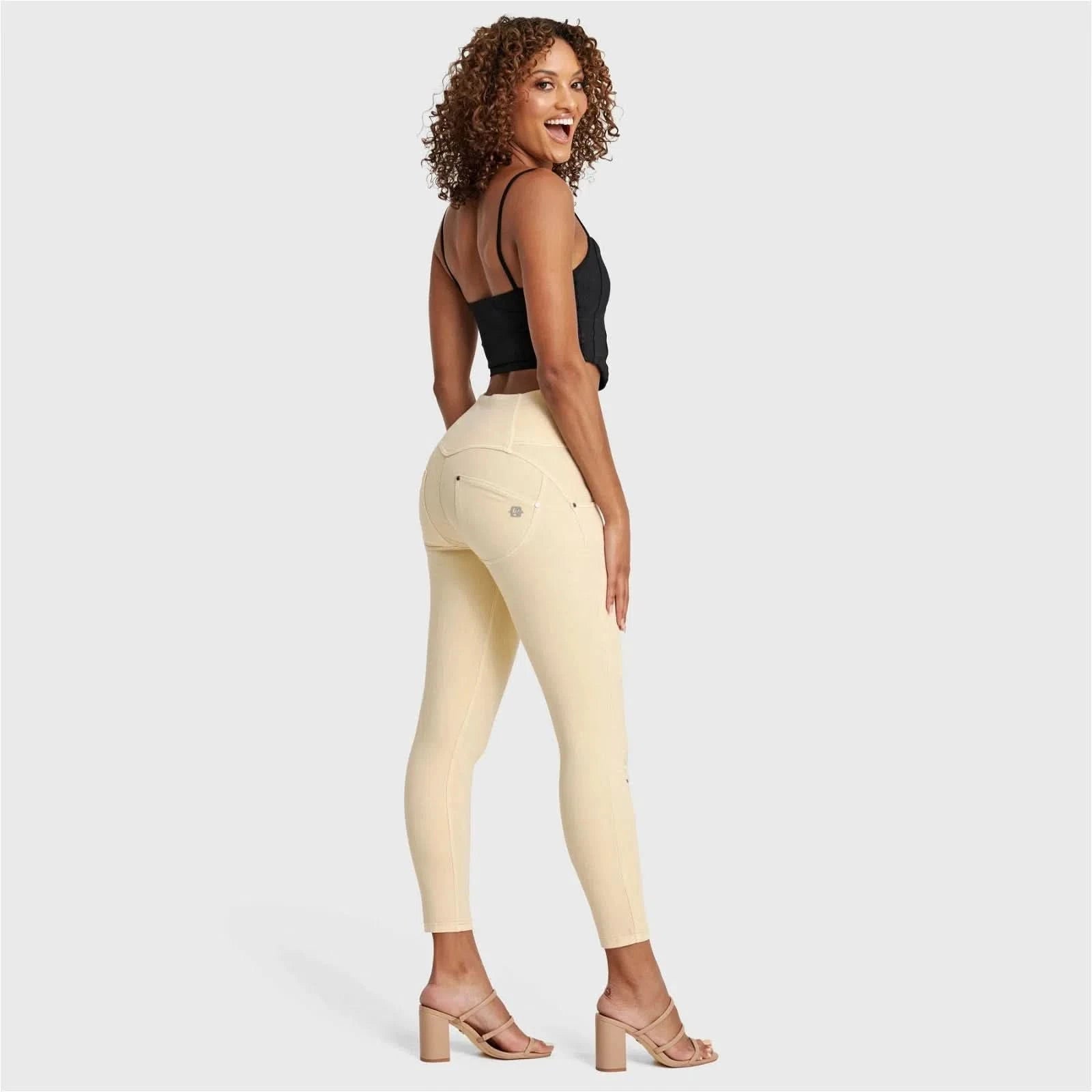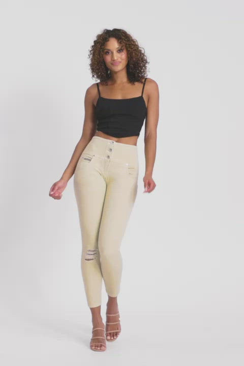 WRUP SNUG Distressed Jeans - High Waisted - 7/8 Length - Beige