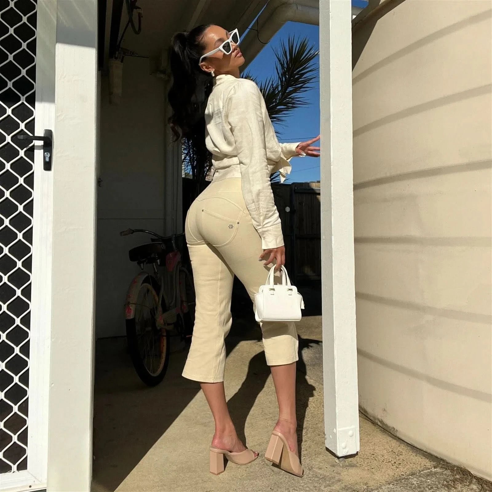WRUP SNUG Jeans - High Waisted - Cropped - Beige