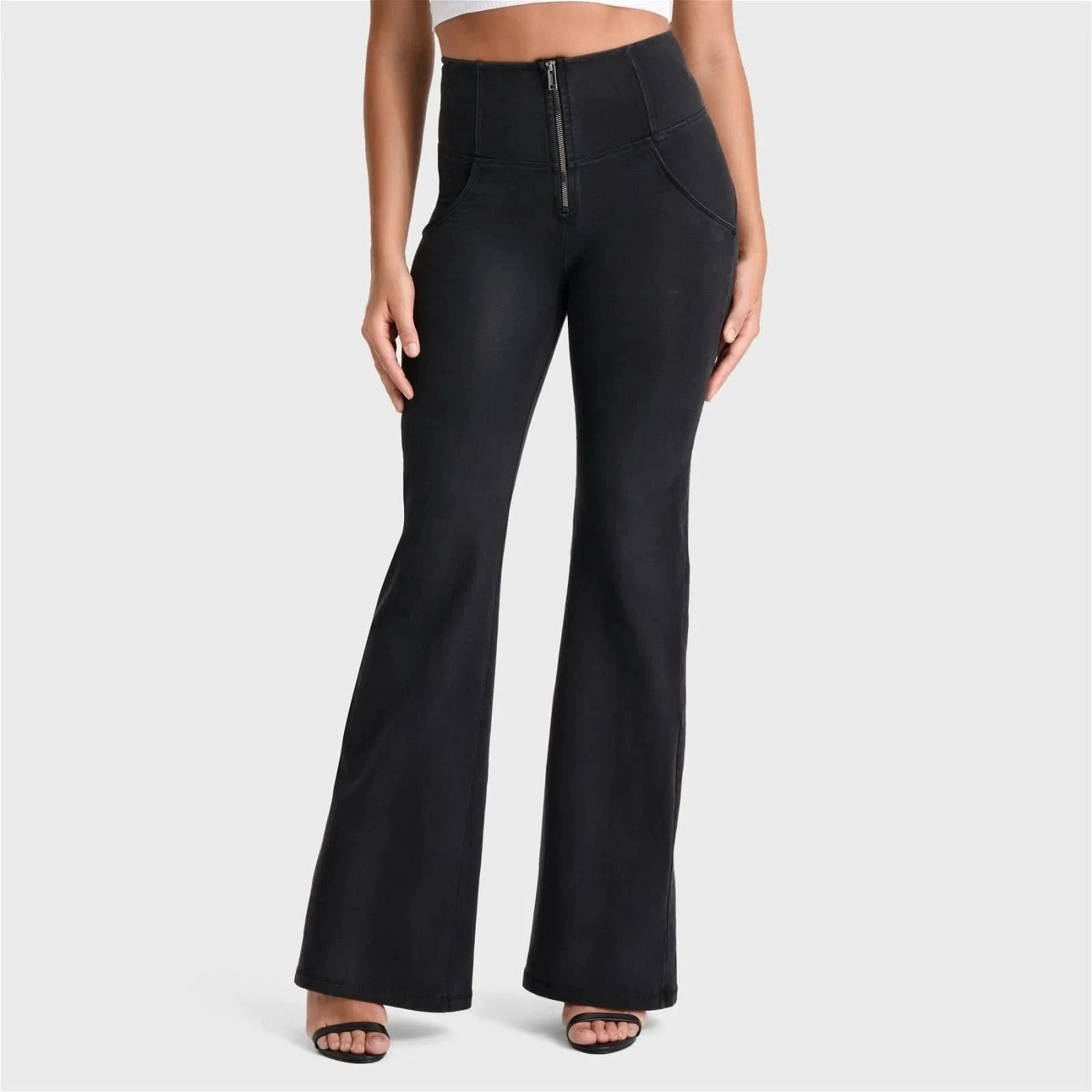 WRUP Denim - High Waisted - Super Flare - Black + Black Stitching